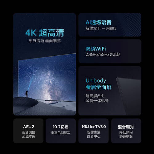 小米75英寸4K超清智能网络电视机支持120Hz高刷新率,带来流畅的画面表现。其远程语音遥控和混合调光技术,提供便捷的操作体验。